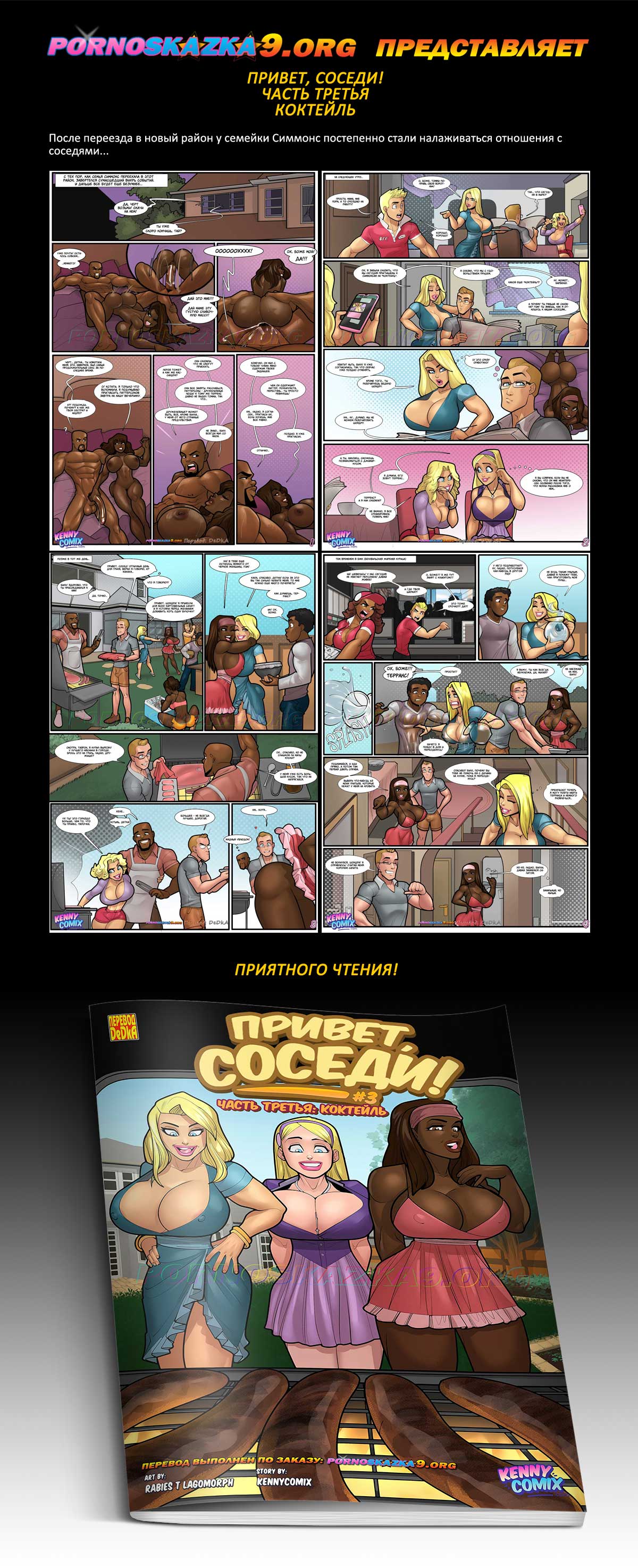 Порно комикс Привет, соседи! Часть 3. Коктейль. После переезда в новый район у семейки Симмонс постепенно стали налаживаться отношения с соседями…